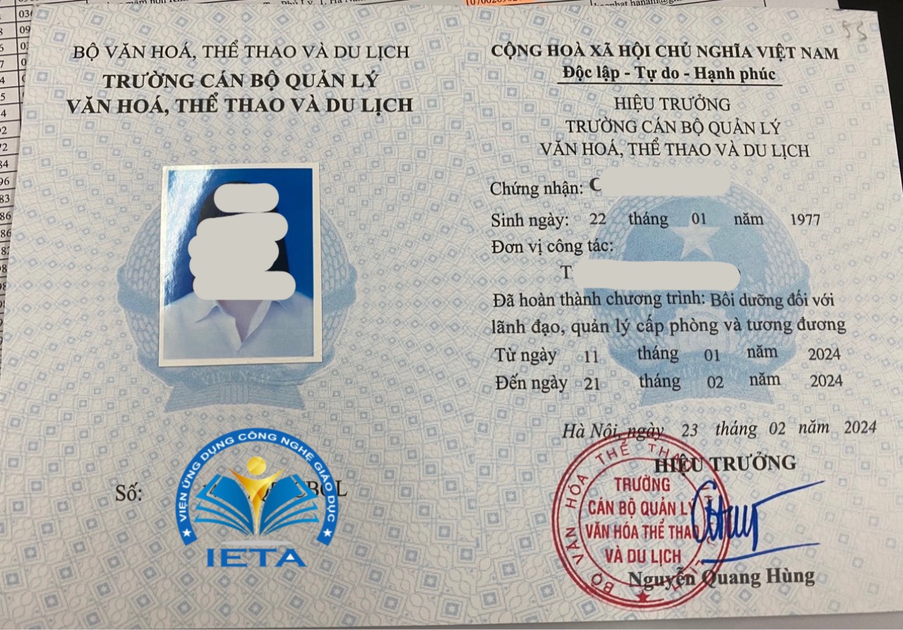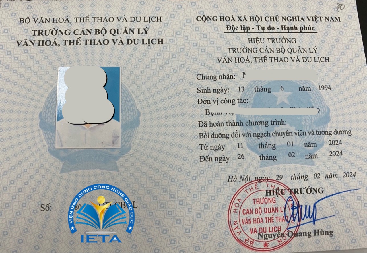 Đơn vị đạo tạo: Trường Cán Bộ Quản lý Văn hoá Thể thao và Du lịch