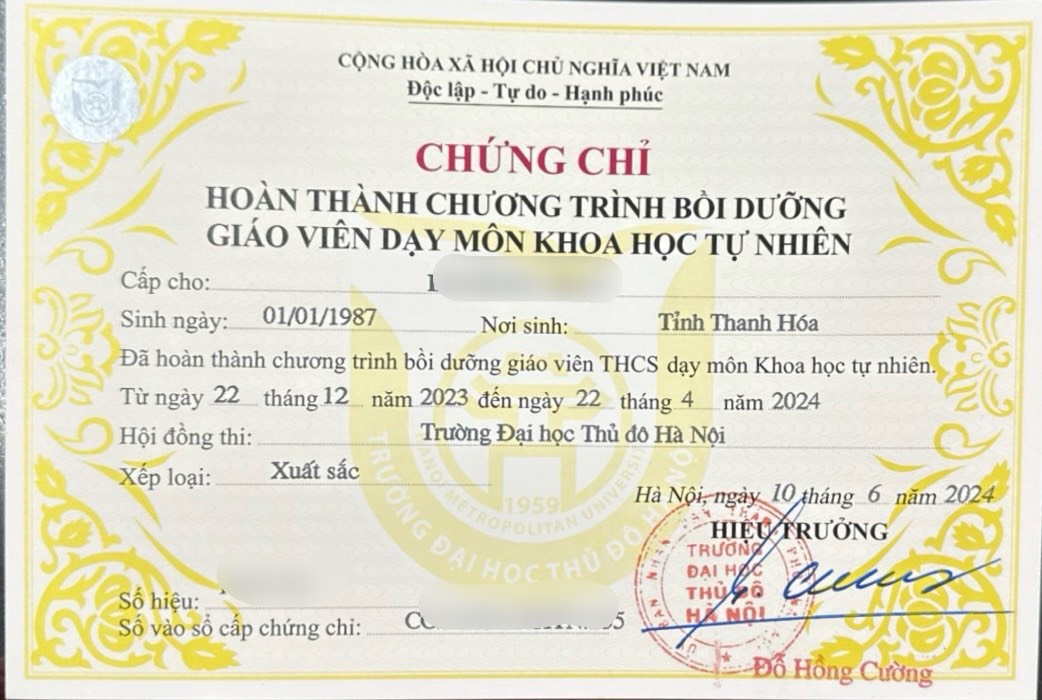Kết thúc khóa học, học viên sẽ nhận “Chứng chỉ bồi dưỡng Giáo viên dạy môn Khoa học tự nhiên, Lịch sử và địa lý” theo quy định của Bộ Giáo dục; có giá trị sử dụng vĩnh viễn trên toàn quốc; đủ điều kiện để bổ sung hồ sơ khi đi giảng dạy tại các trường THCS, các trung tâm, đơn vị, cơ quan.